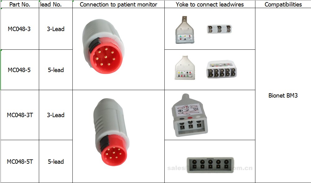 Bionet BM3 متوافق مع ECG كابل الجذع ، 3-الرصاص ، 5-الرصاص ECG