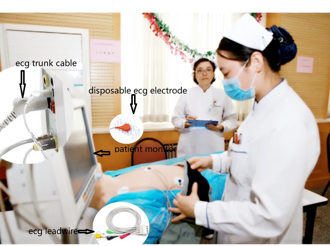 قم بتوصيل wrie lead wrg بجهاز المريض التكيفي ، وتحقق مما إذا كان opertion هو نفس تعليمات التشغيل الخاصة بدليل التشغيل. يجب توصيل القطب ECG من سلك الرصاص على المريض بالترتيب ، يجب أن يكون متصلا سلك الرصاص بشكل منفصل لتجنب entwine ، وإلا فإنه قد يسبب تداخل أثناء المراقبة ، مثل تقلب معدل ضربات القلب ، تقلب الموجي الخ