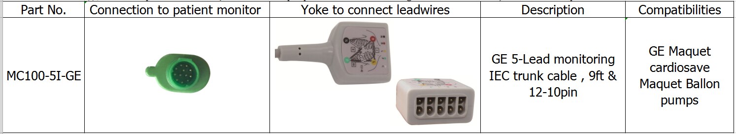 مضخات بالون GE MAQUET المتوافقة ومضخة 5-Lead كابل IEC للمراقبة ، 9ft و 12-10pin