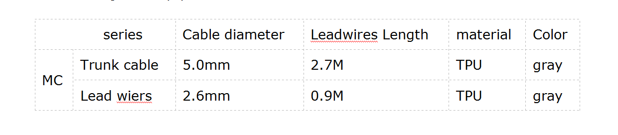 متطلبات البيئة درجة حرارة البيئة: 0 ℃ ~ 40 ℃ الرطوبة النسبية: 15٪ ~ 85٪ الضغط الجوي: 86kpa ~ 106kpa حزمة وتخزين يجب أن يتم تعبئتها كل كابل ECG منفردة ، يجب أن يتم تخزينها في داخلي قوي دون غاز تآكل. شروط التخزين أدناه: (1) درجة حرارة البيئة: -10 ℃ ~ + 40 ℃ (2) الرطوبة النسبية: ≤80٪ يتوافق مع EC 、 ISO13485 فترة الضمان / فترة الصلاحية: فترة الضمان: 6 أشهر فترة الصلاحية: N /أ