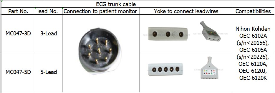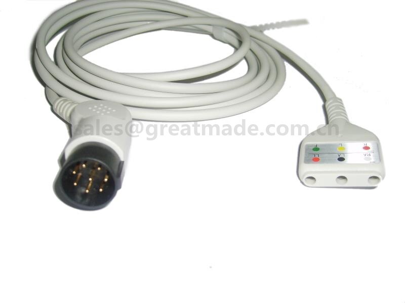 متوافق مع Nihon Kohden ECG Cable، 8pin، Din Yoke، 3-lead , OEC-6102A