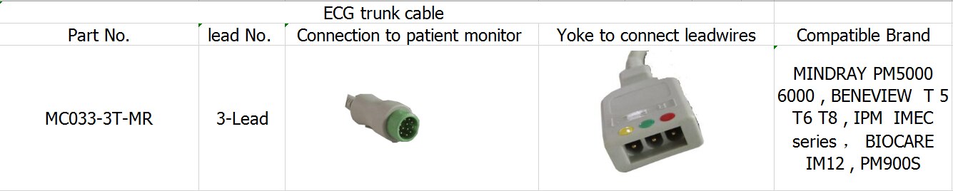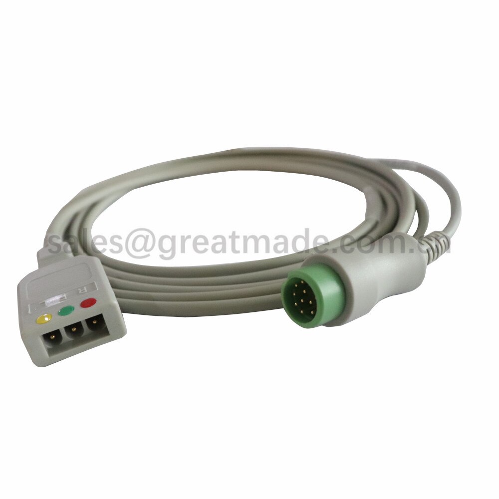كبل ECG Cable 3-lead ل BENEVIEW T5 T6 T8 ، BIOCARE IM12 ، PM900S