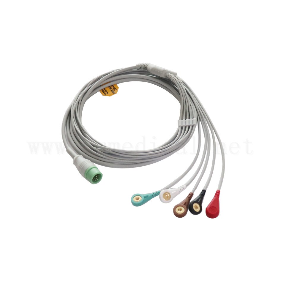 وصف deComp متوافق مع كبل ECG C50 C60 C80 5-lead مع أسلاك الرصاص استخدام الجولة 12PIN مع شاشة المريض
