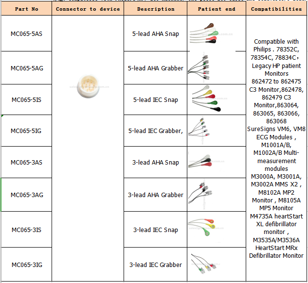 متوافق مع آلة تخطيط القلب PHILIPS (HP) ، وكابل ECG المكون من قطعة واحدة والأسلاك الأمامية ، 5 وصلات ، أو Snap ، أو AHA أو IEC.HP 12pin ، موصل مستقيم