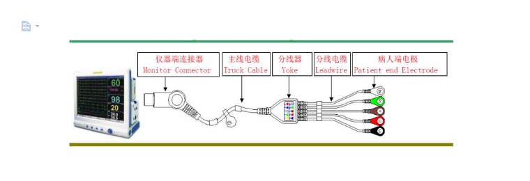 قم بتوصيل wrie lead wrg بجهاز المريض التكيفي ، وتحقق مما إذا كان opertion هو نفس تعليمات التشغيل الخاصة بدليل التشغيل. يجب توصيل القطب ECG من سلك الرصاص على المريض بالترتيب ، يجب أن يكون متصلا سلك الرصاص بشكل منفصل لتجنب entwine ، وإلا فإنه قد يسبب تداخل أثناء المراقبة ، مثل تقلب معدل ضربات القلب ، تقلب الموجي الخ