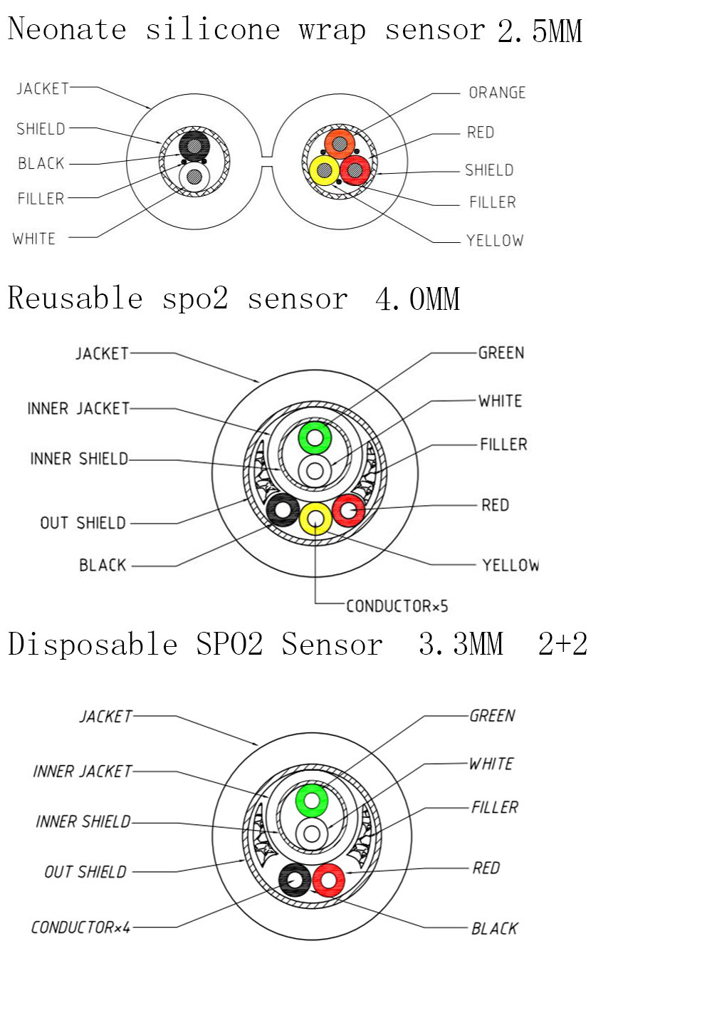 يمكن تخصيص طرف المريض وطرف الجهاز لكابل SpO2 وفقًا لاحتياجاتك ، ومتوافقًا مع مجموعة متنوعة من الطرز. إذا كنت بحاجة إلى التخصيص ، يرجى الاتصال بنا.